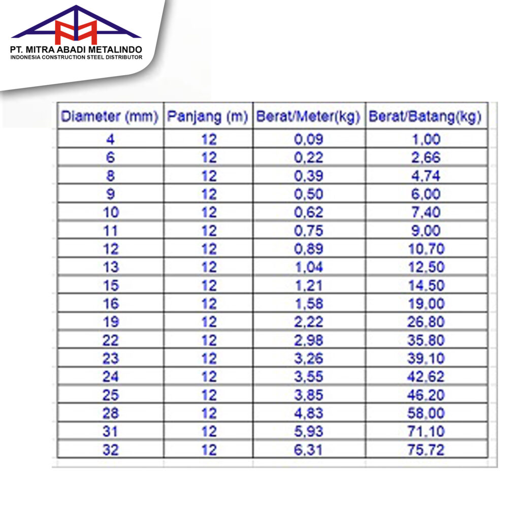 Panjang standar batang besi adalah 12 meter, namun proyek dapat meminta ukuran lain sesuai kebutuhan. Dengan demikian, proses instalasi bisa lebih efisien.